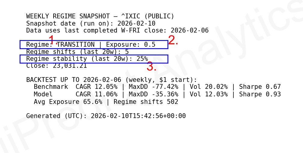The weekly Nasdaq risk regime snapshot has three core components market participants should be primarily focused on when reading it: