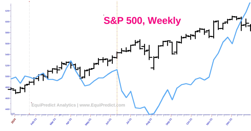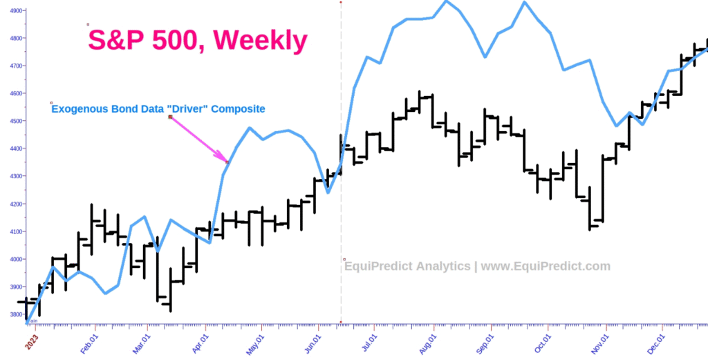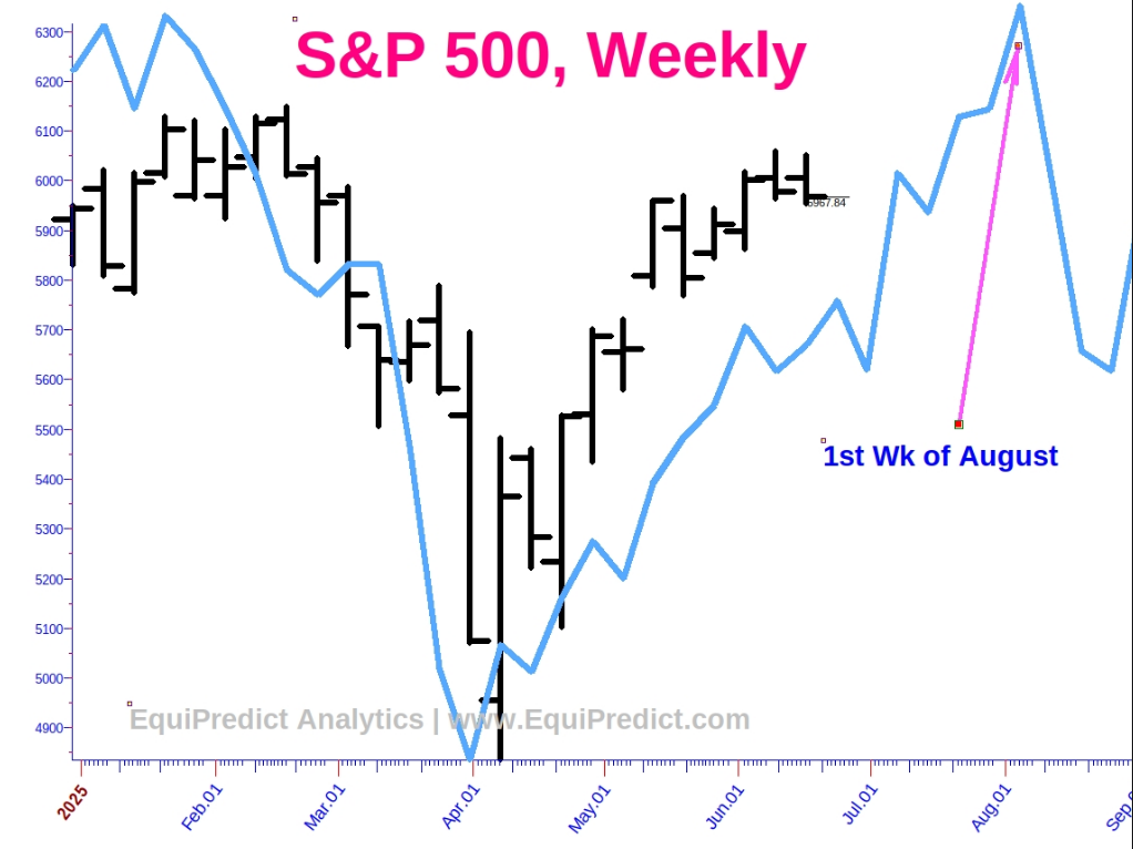 Included here is a composite of varied bond data sets, pushed forward in time. According to the forecast, at the risk of sounding like a broken record, there is no reason to be in a bearish frame of mind until early to mid-August. Markets will likely continue to find lift until then.