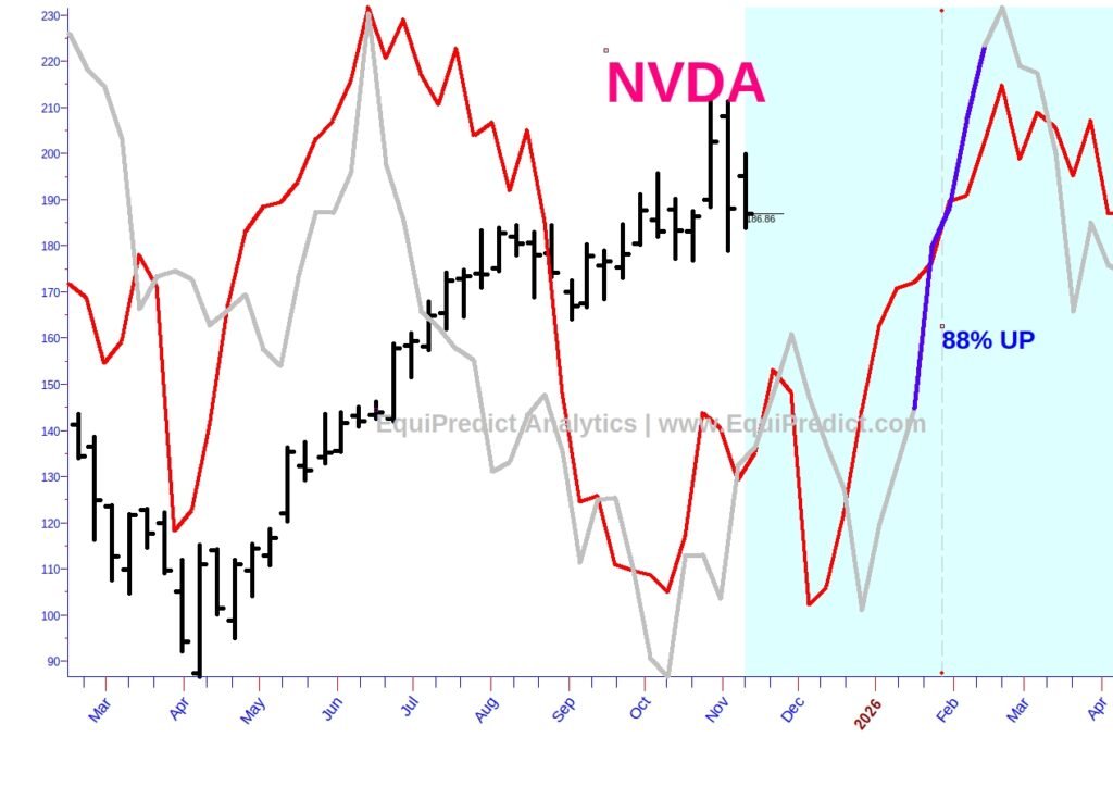 There is a 70% probability attached to NVDA consoldting or falling soon into the middle of December. From there, the cyclical forecast in combination with the Blue Wave forecast directs us to start getting bullish NVDA into February.
