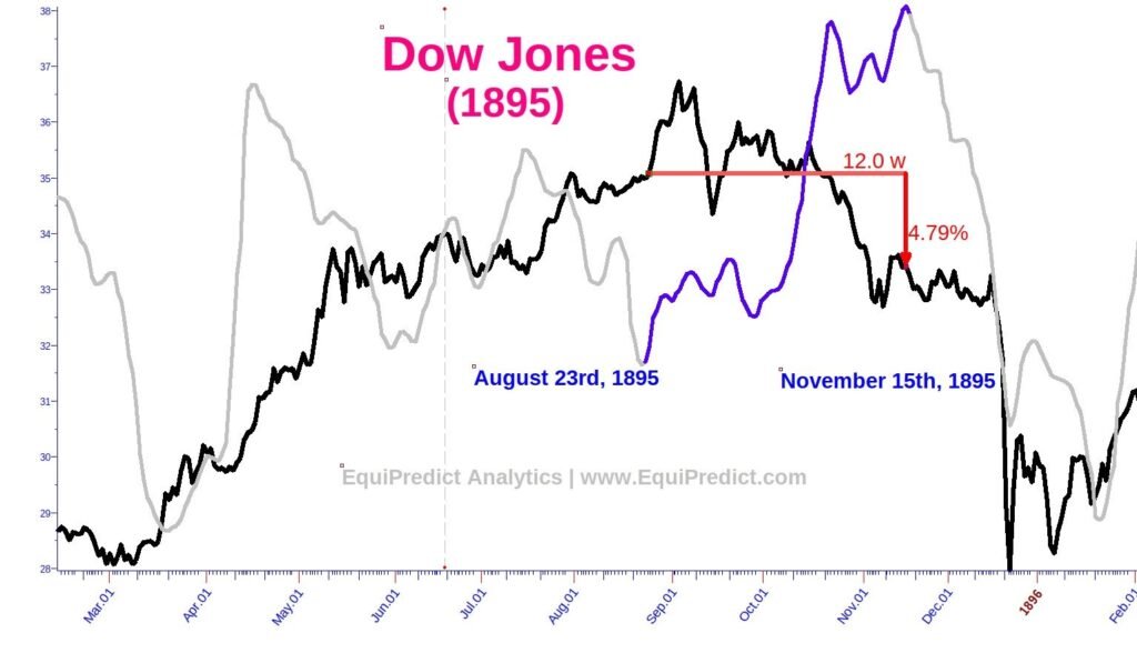 The one time in the history of the Dow Jones where the Blue Wave appeared and resulted in a loss of -4.8% was in 1895 (See Chart 2) over the 12 weeks it was in effect.